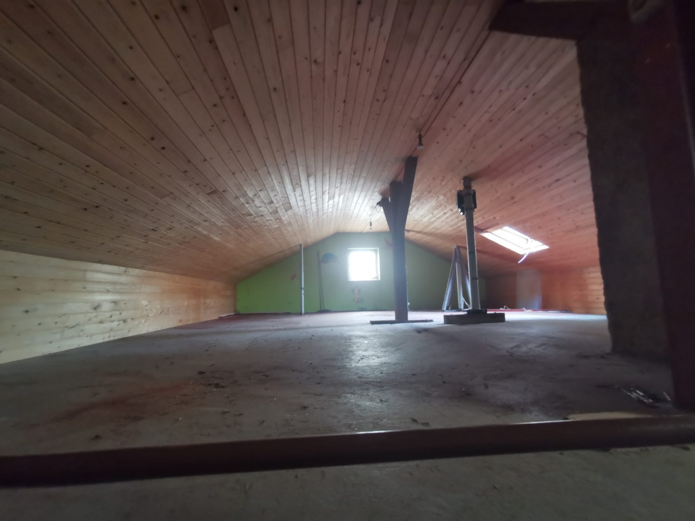 Ein offener Kamin im Wohnbereich sorgt für eine gemütliche Atmosphäre an kalten Tagen. Der Dachboden ist gedämmt und bietet zusätzlichen Stauraum.